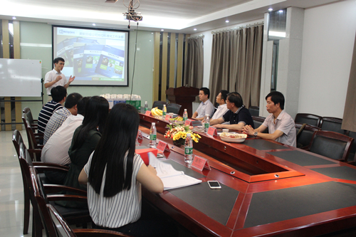 (记者/张驰)8月27日下午6点30分,天色渐黑,美斯坦福迎来了几位远道而来的贵客。湖北工业职业技术学院党委书记顾善远、院长陈海峰、信息与智能工程系主任夏德洲一行三人在信息与智能工程系美斯坦福校企共建专业主任陈方亦的陪同下,舟车劳顿从十堰来到江城,到武汉美斯坦福信息技术有限公司参观及交流,并在大会议室里参与了校企合作交流会。美斯坦福董事长兼总经理海克洪,副总经理郭梁、胡新海、张永龙,董事长秘书董高青,院校合作部商务专员游丹一共同出席了交流会。