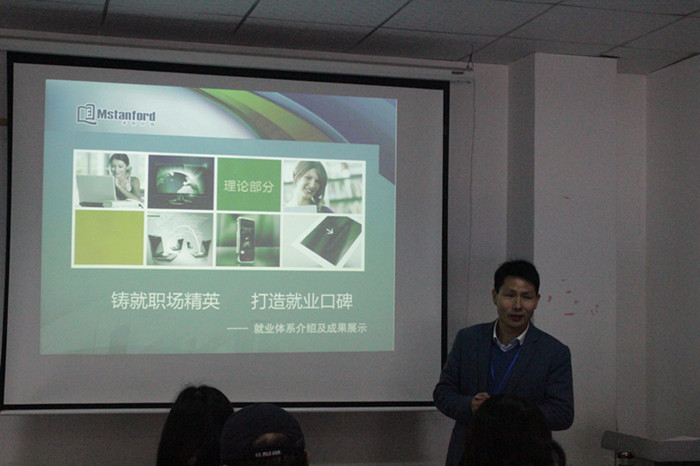 开班仪式结束后,师资认证训练正式进入紧张而紧凑的培训中。赵部长首先以“铸就职场精英 打造就业口碑”为主题,为大家详细介绍了美斯坦福的就业体系以及就业成果。通过就业实习数据分析、美斯坦福就业理念及目标、美斯坦福就业保障、实习安置问题分析四个方面细致而全面的介绍,以结果为导向,让参训讲师对美斯坦福的就业体系有了一个更加全面深入的了解,对用人企业的人才需求也有了更清晰的认识,明确了教学目的,让他们在以后的授课过程中可以更加有针对性的对学生进行教学。