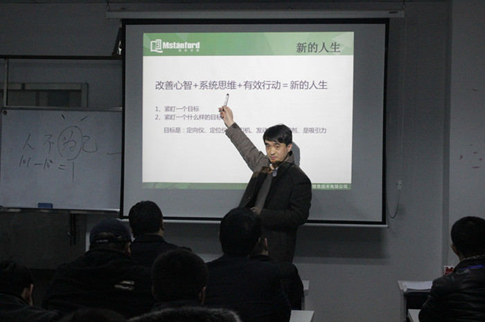 除了教学内容的更新,此次师资训练,张总还利用晚上的时间为大家做了以“百分之百企图心,百分之百结果”为主题的分享演讲。他以“你是否已经‘死’了?”这种略为“惊悚”的问题为大家引出了部分讲师目前的一个状态:心智模式僵化、思维模式僵化、行为模式僵化,心智跟思维模式决定了行为模式,而僵化的行为模式反映到教学中就是部分老师的固步自封、裹足不前,这些对学生将会产生最直接的影响。紧盯一个目标,改善心智,加强系统思维,有效的进行行动,才能为自己及学生开辟新的道路。如何保证大三C类学生的本岗就业率,是美斯坦福针对大三学生需要解决的首要问题。如何解决,张总分享的最重要的一个教学理念就是“企图心”,世间所有的奇迹都是由人创造的,所有创造奇迹的人无一例外的是因为他们对目标的执着而体现出强烈的企图心,并以此来征服千难万苦,最终达成目标。只有将企图心根植与心中,灌输到学生的学习中,才能激发学生学习的欲望和动力,百分之百的企图心,才能保证百分之百的结果。