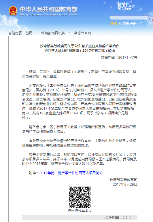 2017年9月29日,美斯坦福与其他191家企业正式获取教育部高等教育司产学合作协同育人项目(2017年第二批)批文,将全面开展产学合作协同育人项目的相关工作。
