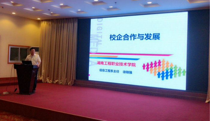 湖南工程职业技术学院信息工程系主任徐刚强,作为美斯坦福校企合作模式的校方代表,分享了与美斯坦福多年校企合作,专业共建的经验及成果,获得了全场的热烈响应!