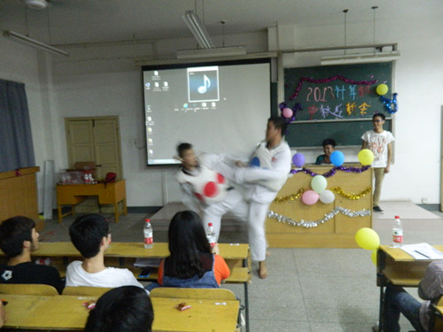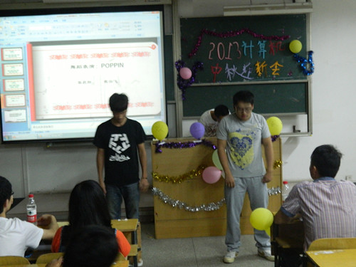 大会在《海阔天空》的美妙歌声中拉开序幕,正当同学们还沉静在歌声中时,两名英姿飒爽的同学开始了街舞表演,尽管其中一名同学体态偏胖,但他动作柔软表情憨厚,引起了在场所有同学的阵阵掌声,跳得实在太棒了。紧接着的是更精彩的散打比赛,大二的老同学对阵大一的新同学,在场所有无不拍手叫好。随后,由大二学生代表为新生介绍校企共建专业的现状、特色及学生生活,在场学生在听完之后都对于即将开始的学习生活充满了期待。最后是一个集体活动,大家一起玩由大二学长自己编写的“变态版超级玛利亚”游戏,更是把晚会推上了高潮。但提到中秋节,不得不想到月饼,在晚会快结束时,大家共同吃着学长们凑钱买的月饼,看着月亮,就像一个新的大家庭一样,就这样,大会圆满结束。