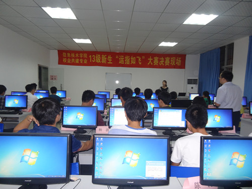 10月11日晚7点,湖北职业技术学院信息技术学院校企共建专业在4号教学楼508室举行了第二届“运指如飞”文字录入大赛决赛。2013级全体师生通过机房控制软件观看了本次比赛。