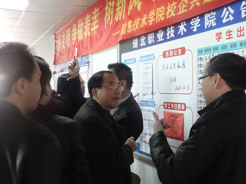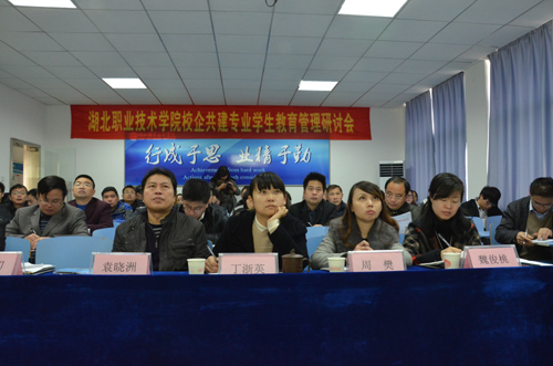 (通讯员/熊健)12月3日上午,湖北职业技术学院校企共建专业学生教育管理研讨会暨班主任工作达标竞赛启动仪式在4号教学楼美斯坦福校企共建专业示范基地举行,学工处、信息技术学院负责人,各教学院学管副院长、美斯坦福校企共建专业负责人、部分教学院共建企业负责人和共建专业班主任代表等参加了会议,会议由学工处副处长何玉初主持。