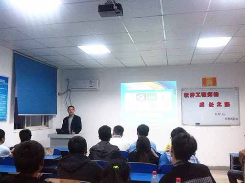 为了增强学生的专业素养,激发学生专业学习兴趣,提高学生适应社会的能力,计算机系校企共建专业教研室举办了以“软件工程师成长之路”为主题的讲座。这次讲座为期一周,4月7号到14号,以班级为单位开展,邀请了共建专业教研室李正红主任给同学们分享了他多年来从事软件行业的成功经验和心路历程。