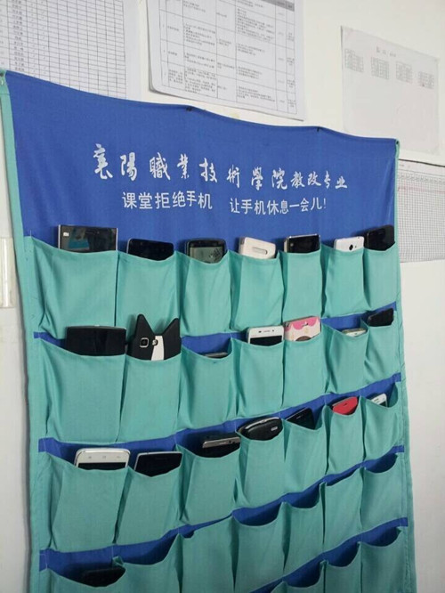 “现在就业压力大,作为新一代的年轻人,只有刻苦学习,不断钻研,才能为我们以后找到合适的工作机会增加筹码。”2014届新生,教改1403班的班长窦杰同学如是说,并从开始上课的第一天起就带头将手机放进教室后面的手机袋中。但也有个别同学认为此举无法从根本上改变同学们的上课态度。