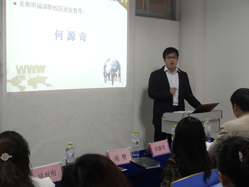 (通讯员/陈显梅)2015年4月14日上午8点30分,湖北职业技术学院信息学院软件信管专业就业启动会议在415教室顺利召开。本次会议除了信息学院熊书记、湖职校区的全体领导及老师参加外,还迎来了一位特殊的嘉宾——来自美斯坦福就业督导部的何源琦老师。湖职校区全体老师对何源琦老师的到来表示了热烈的欢迎,会议由柳峰主任主持。