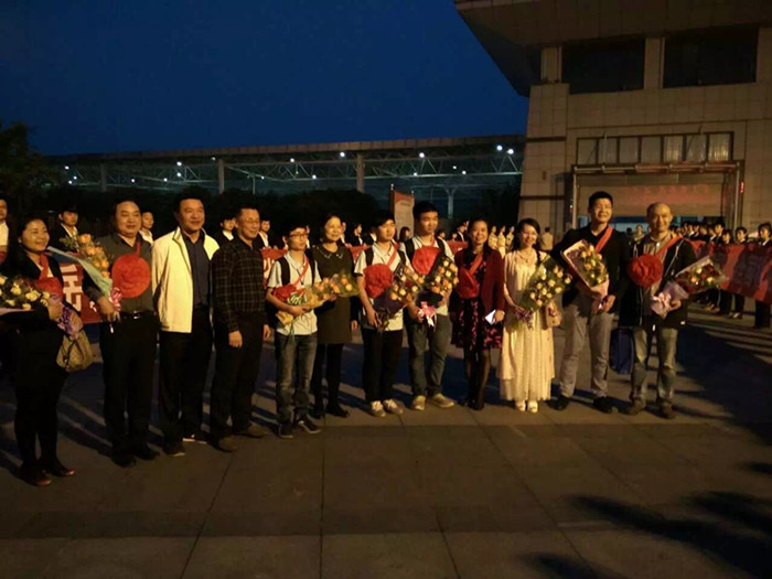 岳阳职院党委书记喻岳兰、院长张建、党委副书记潘岳生率领师生赴岳阳东站喜迎获奖团队师生载誉归来。由国际信息工程学院56位学生组成的欢迎队伍向凯旋归来的师生们献上花束,现场一片欢腾,吸引了众多旅客驻足围观。
