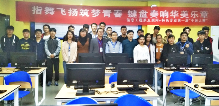 2017年10月18日晚,山东工业职业学院与美斯坦福合作共建的互联网+特色专业第一届“手速大赛”决赛在实训室一举行。互联网+特色专业主任王世鹏、招就办主任熊鹰、教学主任吴翔出席并观看了比赛。互联网+特色专业全体老师及同学分别在教室以直播的形式全程参与比赛,并不断为选手加油助威。