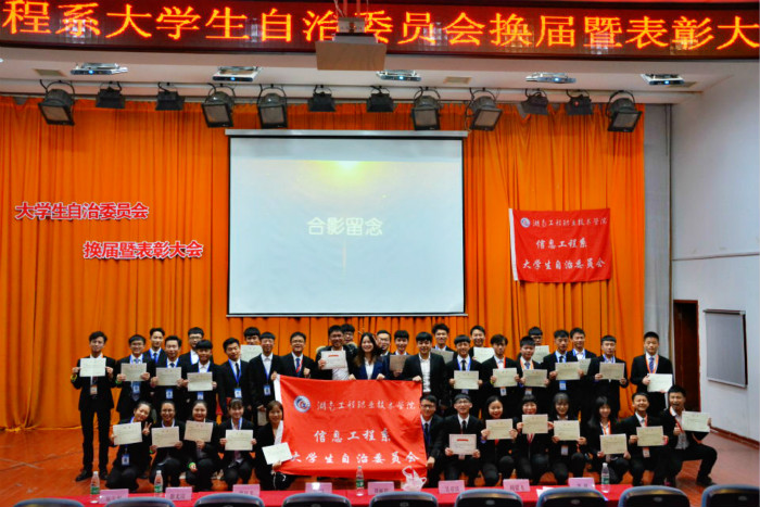 2017年11月29日19时,湖南工程职院•美斯坦福共建专业第三届大学生自治委员会(以下简称:大自会)换届暨表彰大会在图书馆报告厅隆重举行。