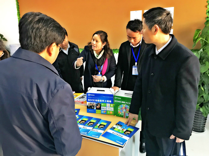 2017年12月5日,莱芜市教育局副调研员鹿忠勤、莱芜市各中专院校领导一行莅临莱芜职业技术学院,就校企合作进行考察指导。莱芜职院教务处长何玉广、信息工程系教务科主任王娟、学生科科长董振华,以及莱芜职院·美斯坦福校企共建专业招就办主任汪琼玉等领导热情接待到访领导。