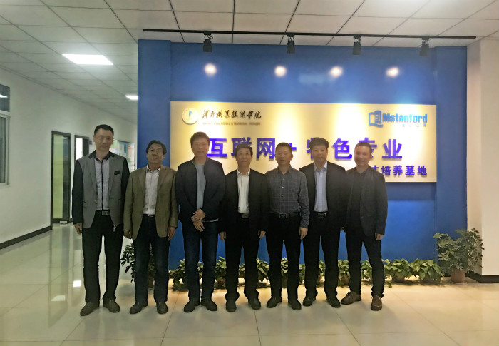 2018年3月15日,美斯坦福董事长兼总经理海克洪、总经理助理胡志平、发展规划部副主任吴少美莅临渭南职业技术学院机电工程学院“互联网+”特色专业视察并指导工作。渭南职业技术学院院长张雄、副院长王录军,对外交流合作处处长尹育华,院长办公室副主任张金,机电工程学院院长杨育民、副院长关斌赴“互联网+”特色专业教学基地参观并指导工作,共商计算机互联网人才教育之大计。