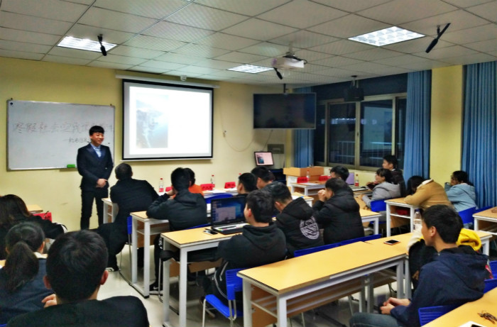 2018年3月19日晚,湖南安全职院•美斯坦福共建专业寒假课题分享大赛在知行楼教室七召开。湖南安全职院•美斯坦福共建专业学工主任李欢出席比赛,学术部老师周姣、杨博,学工部老师张璐、胡曼桢及2017级各班班长担任评委,2017级学生代表观摩了本次大赛。
