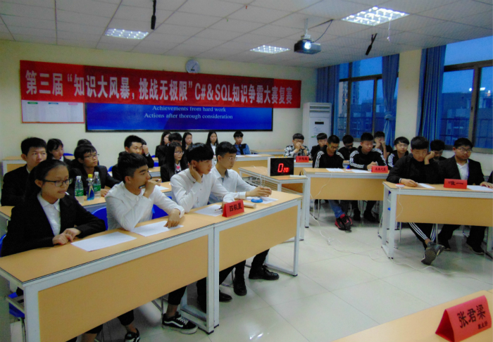 2018年4月27日晚19:00,湖南安院·美斯坦福共建专业第三届“知识大风暴 挑战无极限”C#&SQL知识争霸大赛复赛在知行楼顺利举办。比赛由共建专业主办,大学生自主管理委员会承办。
