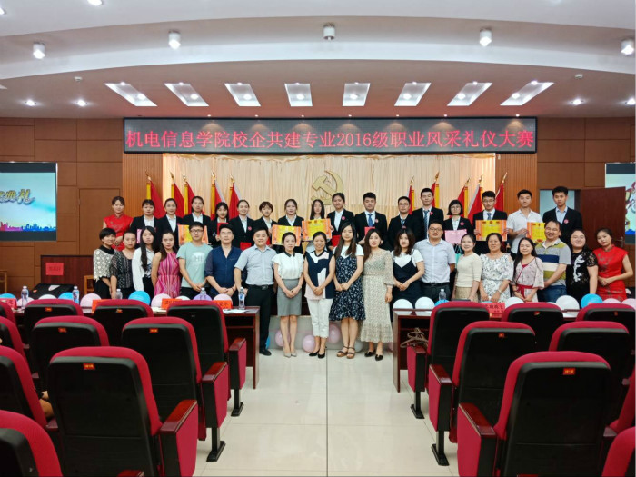 决赛分为两轮。第一轮,各班优秀代表依次上场自我介绍,他们各具特色、声情并茂、自信大方的表演,充分展现了职业人的态度和精神面貌。第二轮,每班选出十名优秀代表展示一系列职业礼仪动作,例如站姿、坐姿、走姿等,选手们精彩的表演,赢得现场观众的阵阵喝彩。在这一环节选手们还展示了错误的、该注意的职场礼仪,“警示”即将步入职场的2016级学生,为其顺利就业打下了坚实的基础。