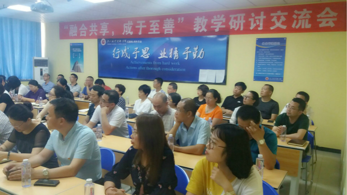 2018年6月19日下午,在唐山职业技术学院分管教学副院长马莉的带领下,教务处处长周慧春、学工处处长安稳等六大职能部门主要负责人,以及全校九大系部的主任、副主任等四十余名院、系领导,莅临唐山职院·美斯坦福互联网+特色专业,参加“融合共享 成于至善”教学研讨交流会。
