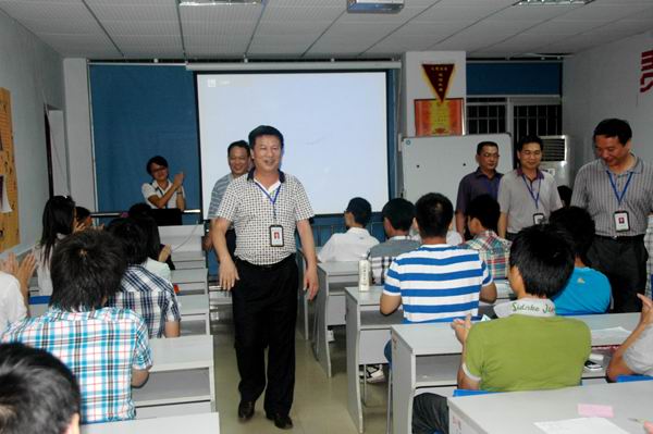2012年9月2日晚7:00,院党委书记肖自力、副书记潘岳生、副院长吴丽文、李晚林、工会主席陈卫东一行,在国际信息工程学院院长彭利余、党总支书记田健龙副院长邵孟秋的陪同下考察了校企共建软件技术专业新生入学第一课的情况。