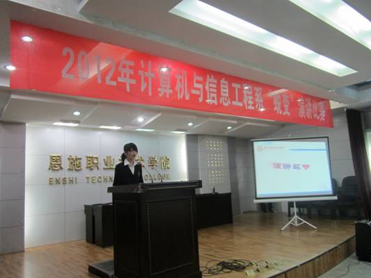 2012年5月29日晚七点,计算机与信息工程系(美斯坦福)校企共建专业学生在院行政楼四会议厅举行了一场“蜕变”演讲比赛。